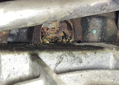 Среди трех засоров, образовавшихся в результате попадания воды с этой стороны впускного коллектора, два сильно протекают, а третий сильно заржавел.